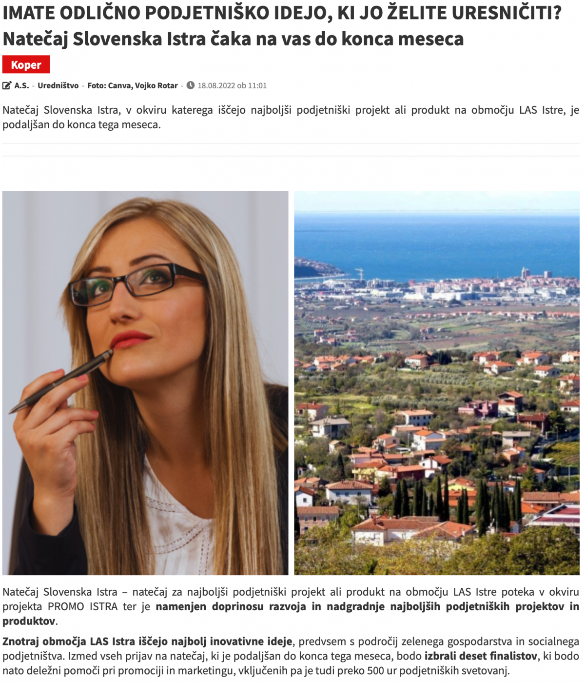 IMATE ODLIČNO PODJETNIŠKO IDEJO, KI JO ŽELITE URESNIČITI? Natečaj Slovenska Istra čaka na vas do konca meseca