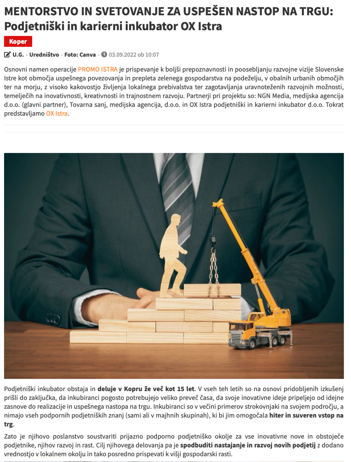 MENTORSTVO IN SVETOVANJE ZA USPEŠEN NASTOP NA TRGU: Podjetniški in karierni inkubator OX Istra