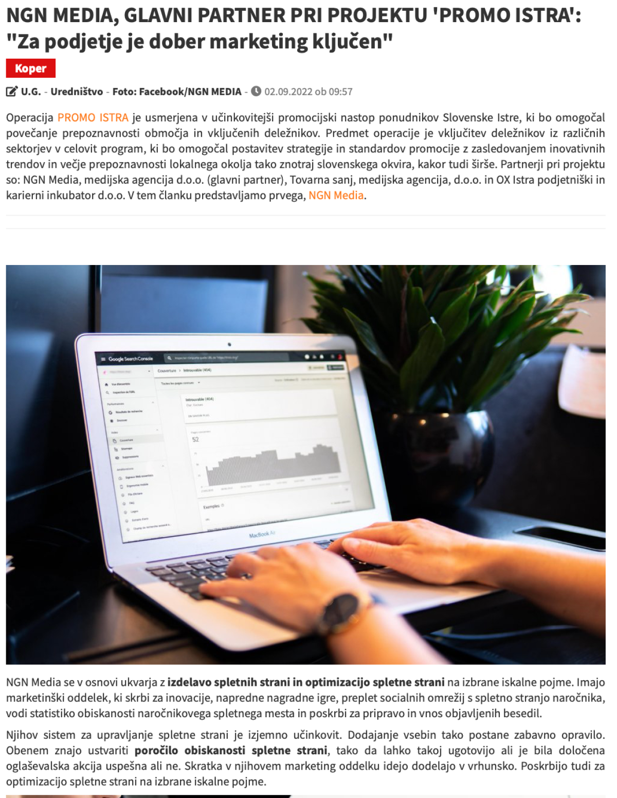 NGN MEDIA, GLAVNI PARTNER PRI PROJEKTU 'PROMO ISTRA': "Za podjetje je dober marketing ključen"